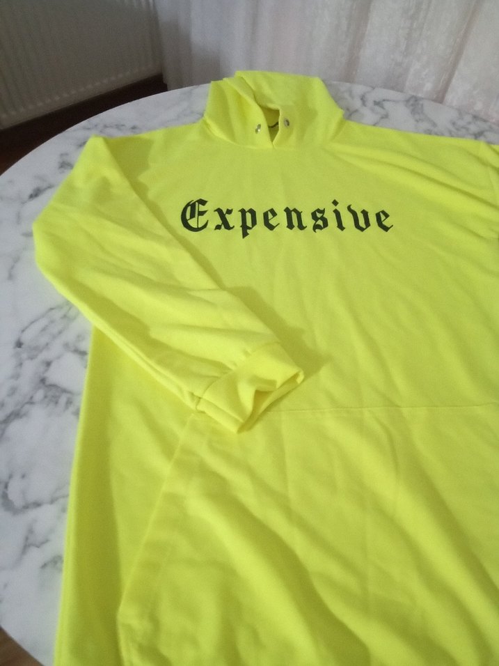 Sarı kapüşonlu sweatshirt, uzun kollu ve bol kesimdir. 'Expensive' baskılı, fermuarlı ve sentetik kumaştan yapılmıştır. Günlük kullanıma uygundur.