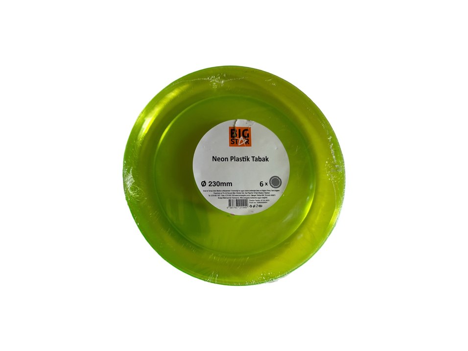 Neon Yeşil Plastik Tabak 230mm 230mm çapında, neon yeşil renkte, pop kültür tarzında 6 adet plastik tabak seti.