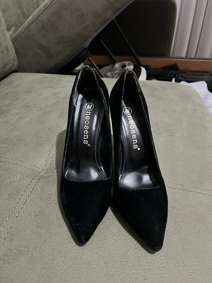 Neosens markalı siyah stiletto topuklu kadın ayakkabı, sivri burun ve kauçuk malzemeden üretilmiştir. Klasik gotik tarzda, ofis kullanımı için uygundur. Zahmetsiz şıklık sunar.