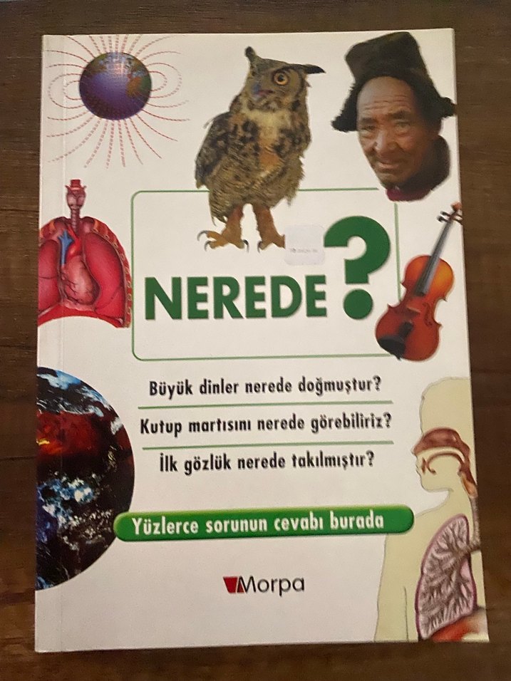 Nerede? – Merak Edilen Sorular Kitabı (Morpa) (İkinci El) Çocukların ve gençlerin merak ettiği “nerede?” sorularına eğlenceli ve öğretici cevaplar sunan, genel kültür ve bilgi kitabıdır. Dinler, doğa, bilim, insan vücudu, icatlar ve dünya hakkında pek çok konuya değinmektedir. Kitap ikinci eldir. Genel durumu iyidir, sayfalar eksiksizdir. Kapakta ve sayfalarda hafif kullanım izleri olabilir (fotoğraflarda görülebilir). Merak duygusunu geliştirmek isteyen çocuklar ve bilgi kitaplarını sevenler için uygundur. Hızlı kargo yapılır İade kabul edilmemektedir.❌ Sorularınız olursa yazabilirsiniz
