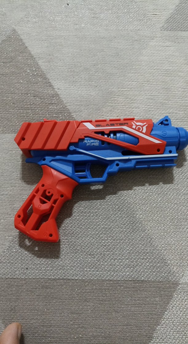 NERF degildir.Öne çıkmadı için yazdim.En az Nerf kadar kalitelidir,yurtdisindan alinmustir.Kırmızı ve mavi renklerde, hızlı ateş özelliğine sahip renkli oyuncak tabanca. Hafif ve kullanımı kolay.