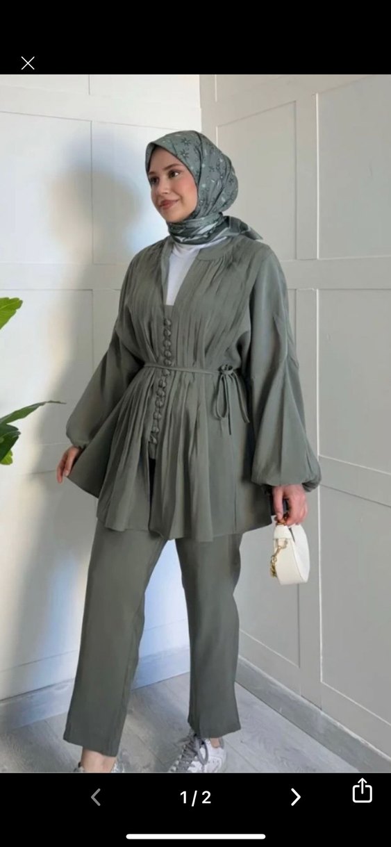 Keten kumaştan, salaş kesim ve uzun kollu kadın takımı. Kemer ve düğme detaylarıyla minimalist sokak stili sunar. Günlük kullanıma uygundur. 1 kere giyildi temizdir 1 bedendır