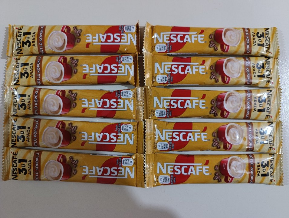 Nescafe anında kahve çubukları, 10'lu paket halinde, hızlı kahve hazırlama için uygun. ☕ Elimde 500 adet bulunmaktadır tane fiyat 9 tl 10'lu fiyat 80tl