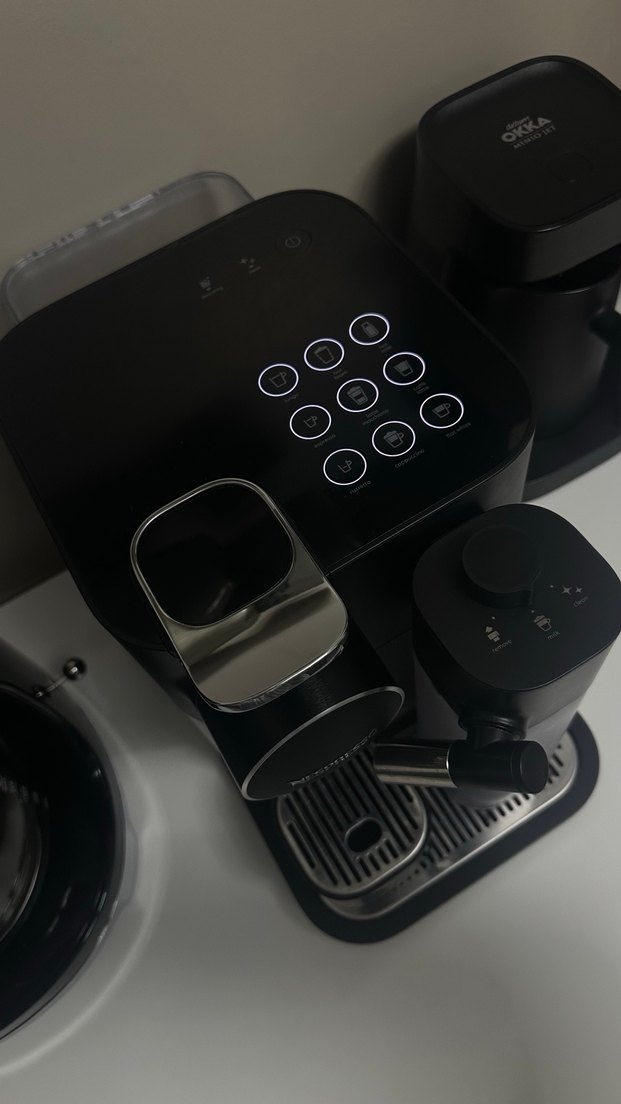 Dokunmatik kontrolleri ve entegre süt köpürtücüsü olan siyah kahve makinesi, sorunsuzdur garantisi sona ermiştir çalışmayan/bozuk hiçbir aksamı yoktur çeşitli kapsüllerle çok lezzetli kahveler yapabilirsiniz İstanbul içi elden teslim