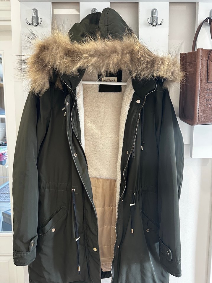 Neteork yeşil Kadın Midi Kaban, Kürklü Kapüşonlu, Salaş Kesim