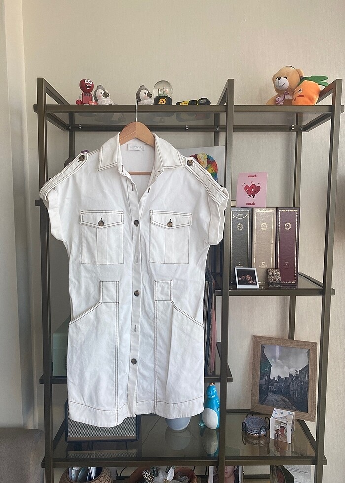 Network marka beyaz denim kemerli elbise (kemeri de vardır) 34 beden ama kalıbı geniş 36 beden hatta 38 beden de bakabilir. Ben 36-38 beden arası giyindiğim dönemde rahatça giyindim. 38-40 arası hala oluyordu ama tam oturuyor bol değil. 158 boyum 60-61 kilo arası maxken de oluyordu oradan hesaplayabilirsiniz.