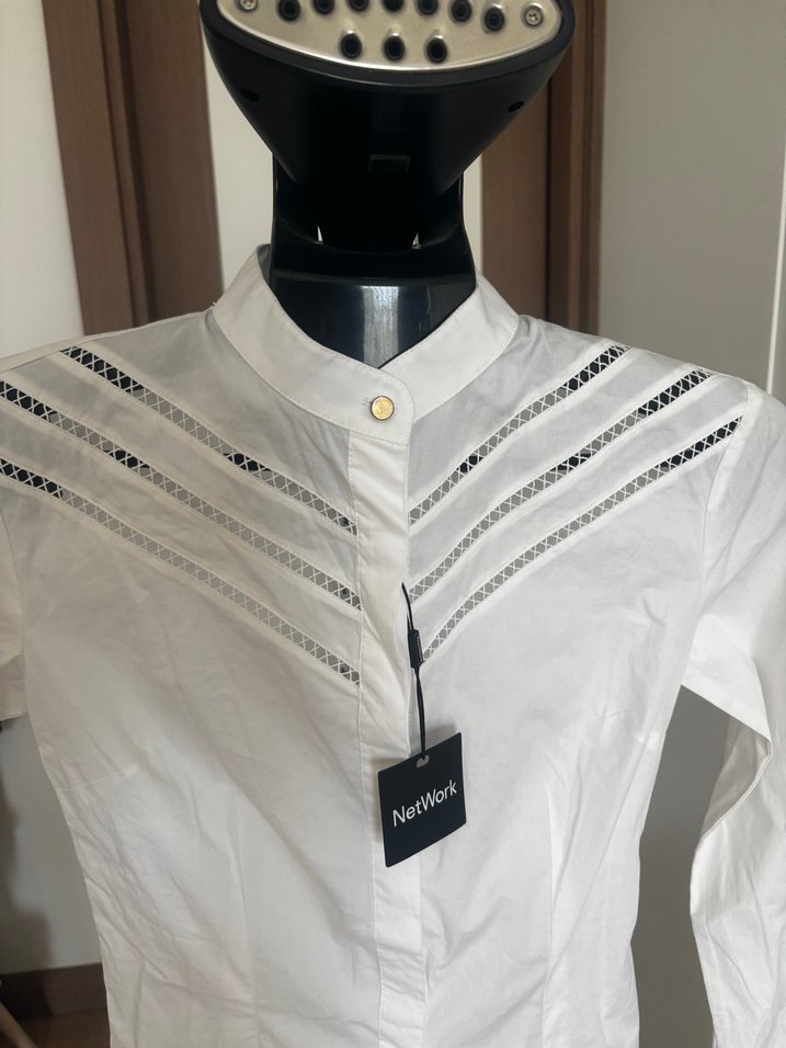 Network markalı kadın gömlek, düğmeli ve yakalı tasarıma sahip. Pamuklu, kısa kollu ve nakışlı detaylarıyla ofis için uygundur.