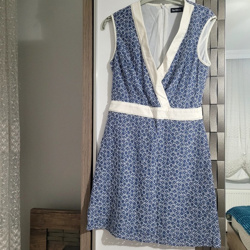 NETWORK Dantel Detaylı V Yaka Mavi Mini Elbise