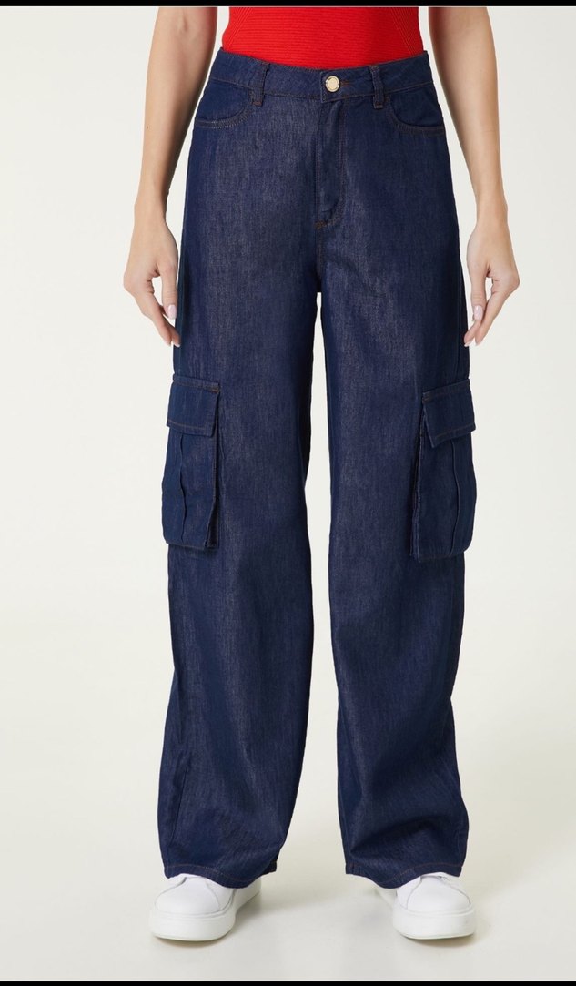 Lacivert renkli, bol kesim denim pantolon. Yanlarda cep detaylarıyla rahat ve şık bir sokak stili sunar. Ürün hiç kullanılmamıştır sadece denenmiştir 29 bedendir kumaşı kalın değildir.