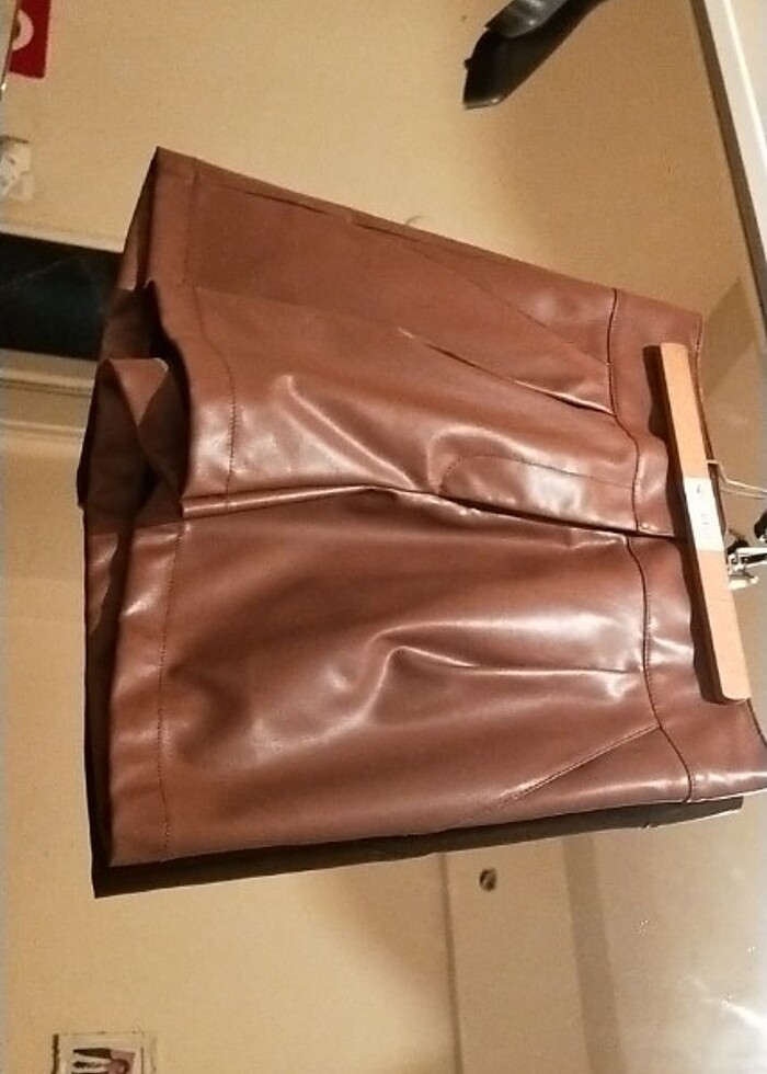 Yüksek bel deri şort