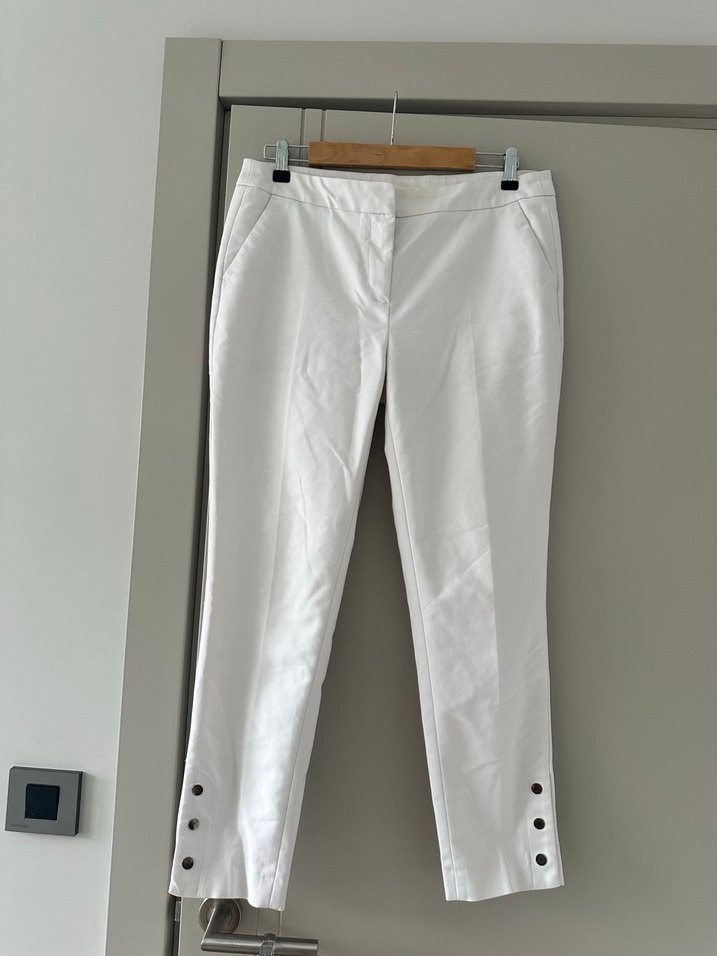 Network Beyaz pamuk kumaştan, düzenli kesim ve paça düğmeli, minimalist ve trend casual ofis tarzına uygun kadın pantolon.iç göstermez diz yapmayan kumaş