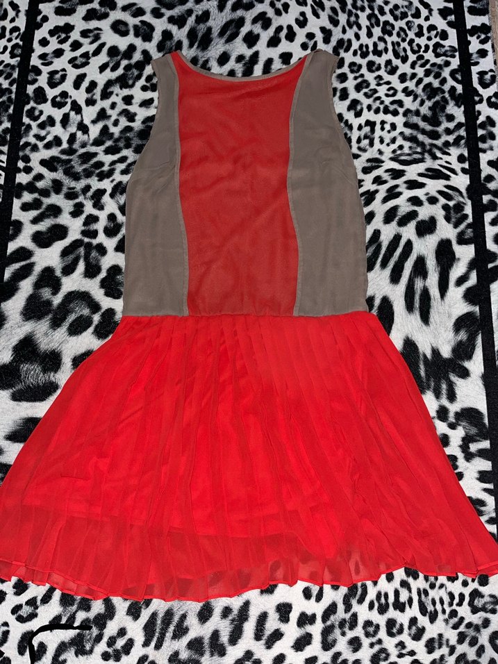 Network nar çiçeği ve koyu bej tonlarında pileli elbise
