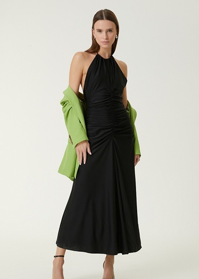 Siyah boyundan bağlamalı elbise yeni aldım alalım 2 hafta oldu düğünde giydim şimdi satıyorum