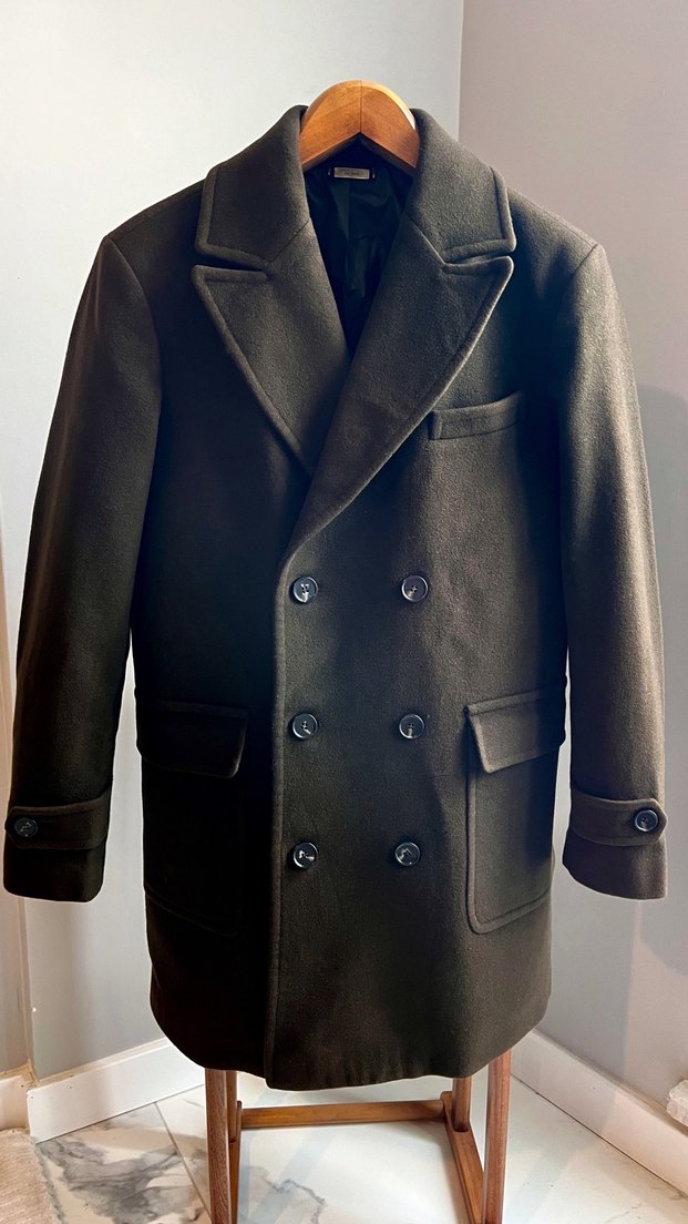 Asıl rengi ikinci görseldeki şekilde. Işık yansıması nedeniyle tonlar farklı görünebilir. Renk konusunda referans 2. Sırt görseli olmalı. Bu kaban çok kaliteli ve pahalı bir kabandı. Eşim sigara kullanmıyor o sebeple ortamlardan sinen koku gitsin diye kuru temizlemeye verdik. Kaban üç aylıktı daha. Yün karışımlı kabanlara kuru temizleme yaparken dikkat edilmesi gerekiyormuş etmemişler, kabanda renk değişimleri oldu. Kol altı kısımları özellikle çektim bakarsanız daha koyu bir haki göreceksiniz. Hakide ton dalgalanmaları oldu yani. Ön ve arka taraf iyi durumda. Düğmeler orijinal dikişler sağlam. Astar sağlam. Marka ve içerik etiketlerini de ekledim. Bedeni 46. Uzunluğu 1.85 olan kişide dizle kalçanın tam arasında.