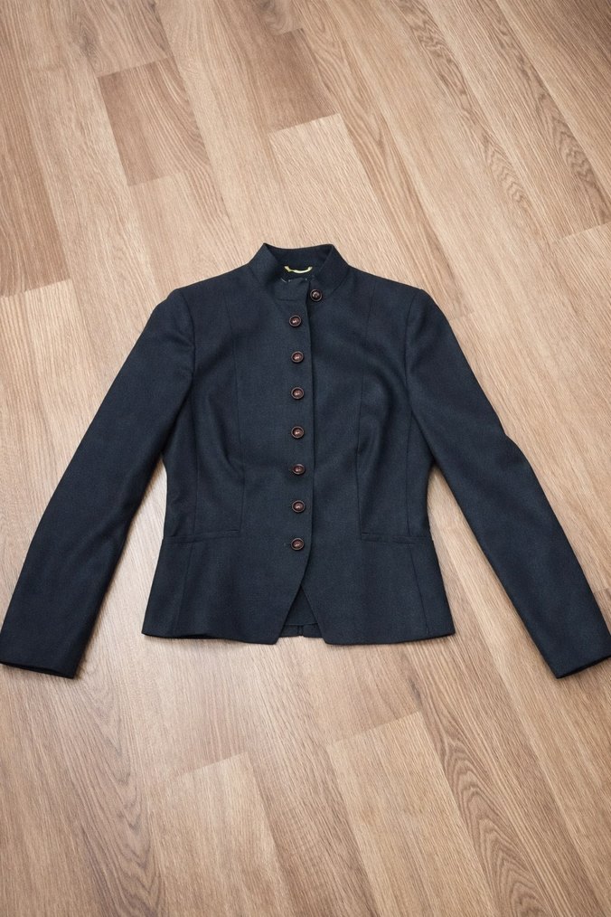 Siyah-antrasit renkte, %100, hiç kullanılmamış yün ceket. Mükemmel durumda ve çok şık. Kalıbı dar, bedeni 40 diyor ancak 38-40 gibi. Ben 36 giydiğim için büyük geldi