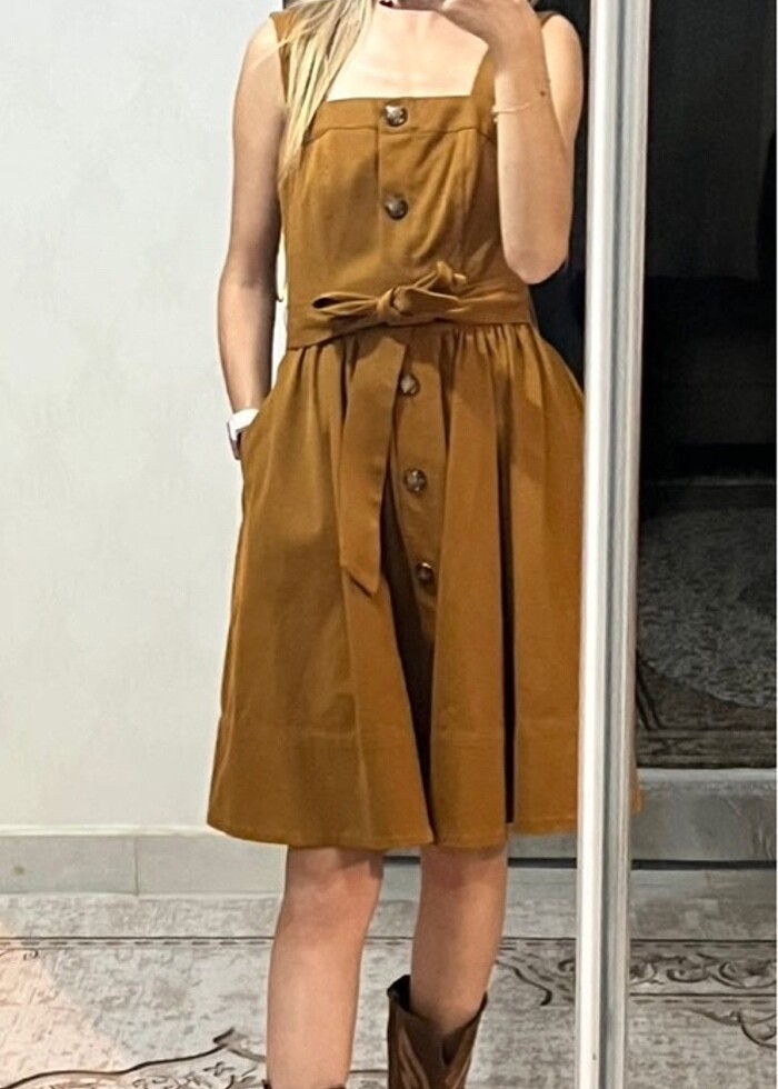 163 boyda diz hizasına geliyor. 34 Bedendir. Üründe herhangi bir terzilik yapılmamıştır. Kalın bir elbise olduğu için sonbahar ve kışta kullanılabilir. Astar ve etiket detaylarını ekledim. Hiç giyilmedi.