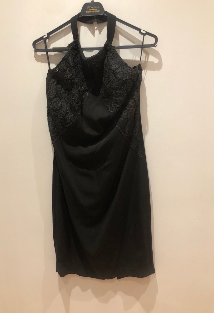 Network marka 40 beden siyah boyundan bağlı önü dantel abiye