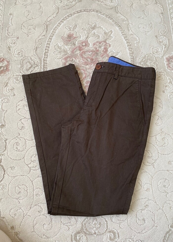 Ütülemeden fotoğrafladım .renkte solma yok .iki kez kullanıldı . Bel :38 cm , boy :97 cm , paça genişliği:20 cm , 0 pamuk
