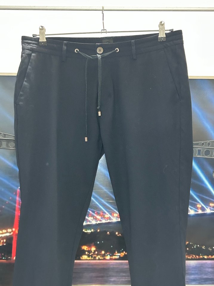 Lacivert renkte, kemerli ve normal boyda, sentetik kumaştan üretilmiş erkek pantolon. Street style ve dış mekan kullanımı için uygundur. 50 Beden