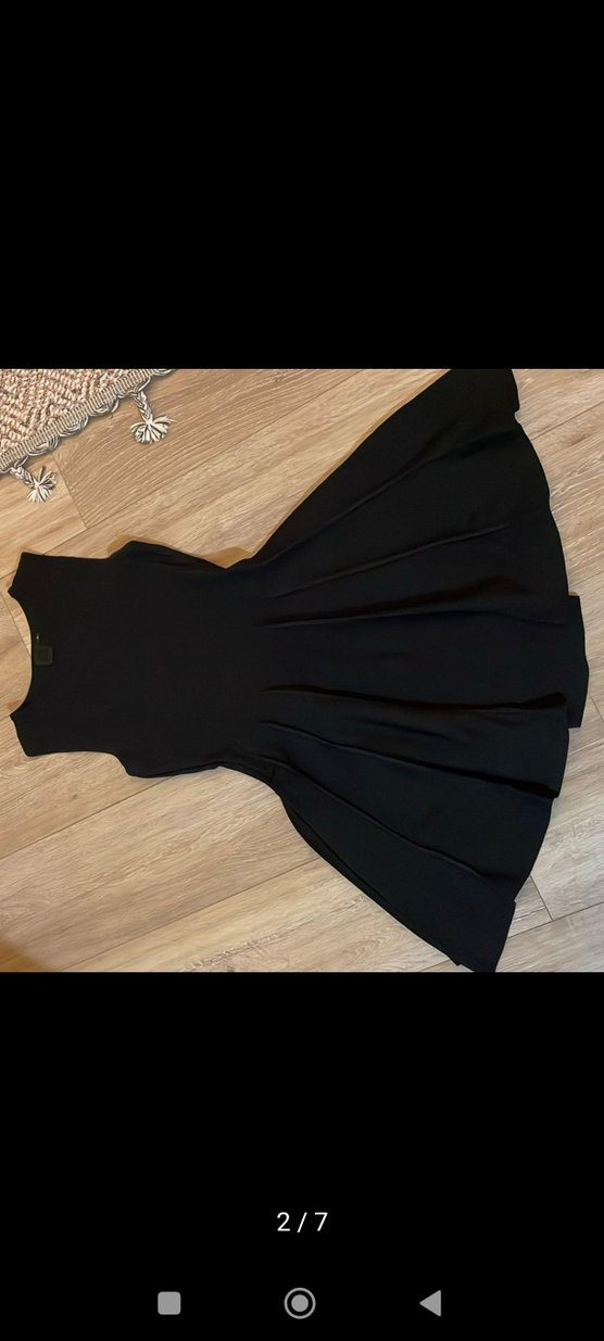 Siyah renk, sıfır yaka, kolsuz ve piliseli detaylara sahip, kısa ve fit kesim triko elbise sadece iki kez kullanıldı hiç bir sorunu yok yeni gibidir.