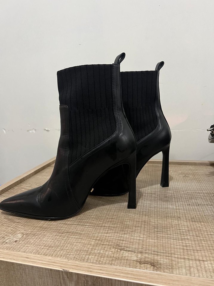 Network Siyah Deri Stiletto Topuklu Kadın Bot