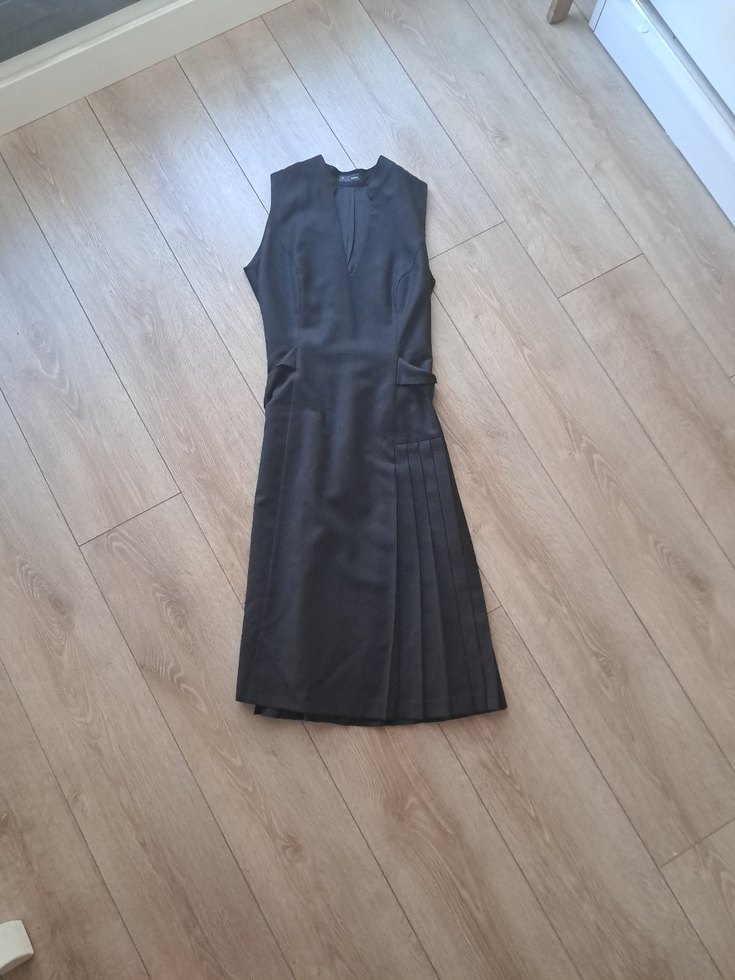 Kameradan dolayı biraz soluk çıkmış ama elbisenin rengi siyah. Tertemiz, mükemmel kondisyonda. Arkasında kemeri var. Yandan fermuarlı. Ofis tarzında çok şık bir elbise. XS 34 beden.