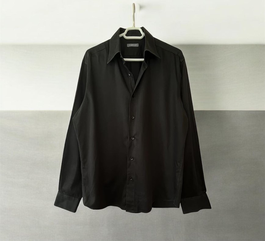 Network siyah erkek gömlek ürün siyah renk pamuklu kumaş yapısına sahiptir geniş beden kolu üç düğmelidir etek kısmında yedek düğmeleri mevcuttur hiçbir deformasyonu yoktur l bedene uyumludur iki kol altı arası 62 uzunluk 73 cm dir #network #siyahgömlek #erkekgömlek