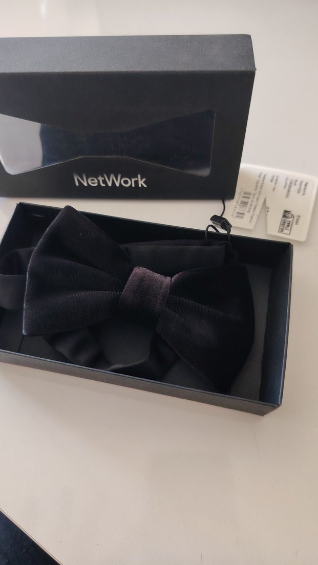 NetWork markalı, baskılı desenli siyah erkek papyon, modaya uygun, avangart iş tarzı için ideal.