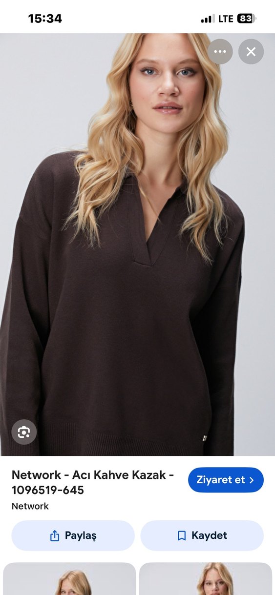 Network markalı koyu kahverengi, V yaka, uzun kollu, rahat kesim triko kazak ve pantolon Günlük rahat sokak stili için yumuşak sentetik kumaştan üretilmiştir. Beden var bilginiz olsun