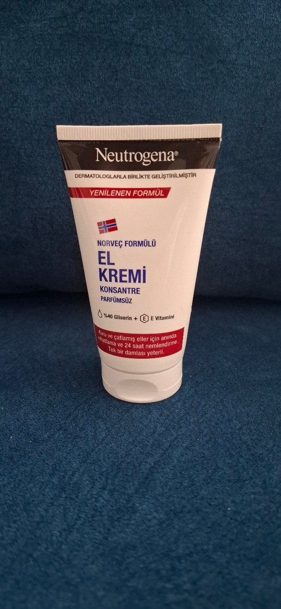 Norveç formüllü, parfümsüz Neutrogena konsantre el kremi. Gliserin ve E vitamini ile kuru ve çatlamış ciltler için 24 saat nemlendirme sağlar.