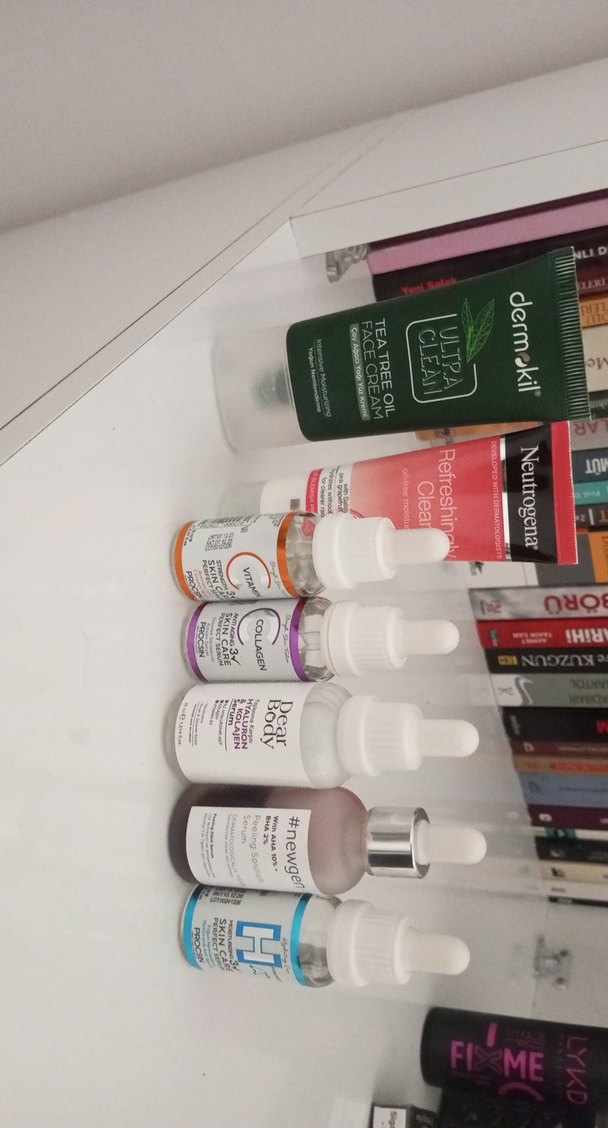 Neutrogena ve Dermekil markalarından çeşitli cilt kremleri ve serumları içeren bakım seti.