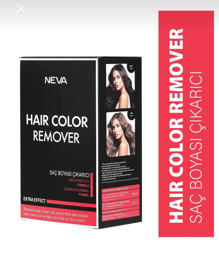Neva Saç Boyası Çıkarıcı, siyah, kahverengi, kırmızı ve diğer koyu renk saç boyalarını güvenli formülüyle çıkarır.