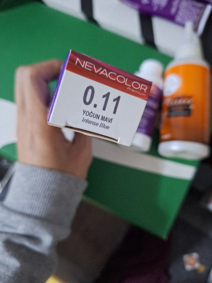 NEVACOLOR 0.11 numaralı yoğun mavi saç boyası, canlı renk sonuçları sunar. Cesur mavi saçlar için uygundur. oksidan 20 lik 30 luk