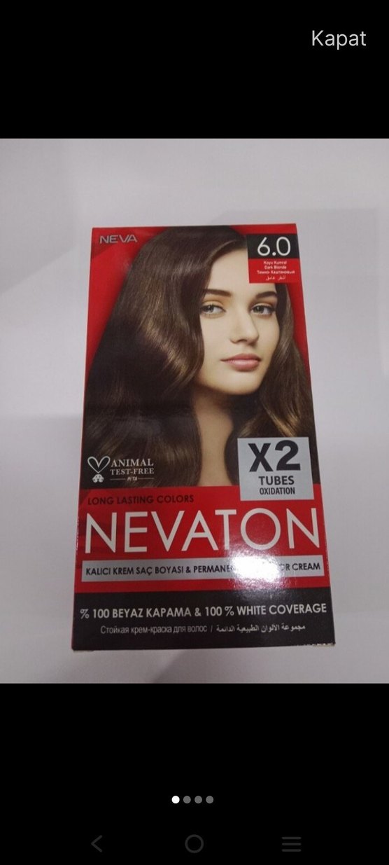 Nevaton 6.0 kalıcı krem saç boyası, %100 beyaz kapama sağlar. Oksidasyon için iki tüp içerir. Uzun süre kalıcı renk sunar. Hayvanlar üzerinde test edilmemiştir.
