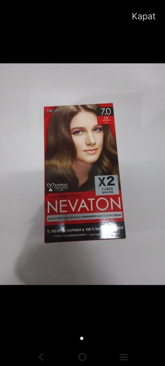 Nevaton 7.0 saç boyası 2 tüp halinde, uzun süre kalıcı ve %100 beyaz kapama sağlar. Hayvan dostu formüle sahiptir.