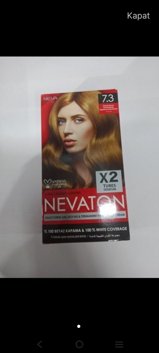 Nevaton kalıcı saç boyası 7.3 numara, uzun süre kalıcı renk ve %100 beyaz kapama sağlar. İçinde oksidasyon için iki tüp bulunur.