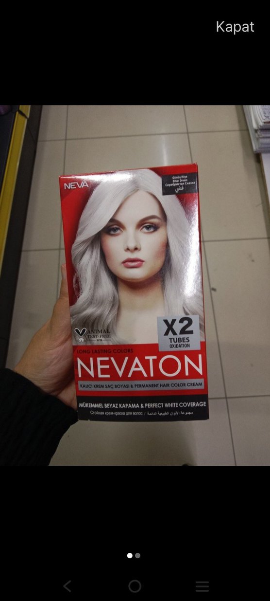 Nevaton kalıcı saç boyası kremi, mükemmel beyaz kapama ve uzun süre kalıcı renk sağlar. Uygulama için iki tüp içerir. ️