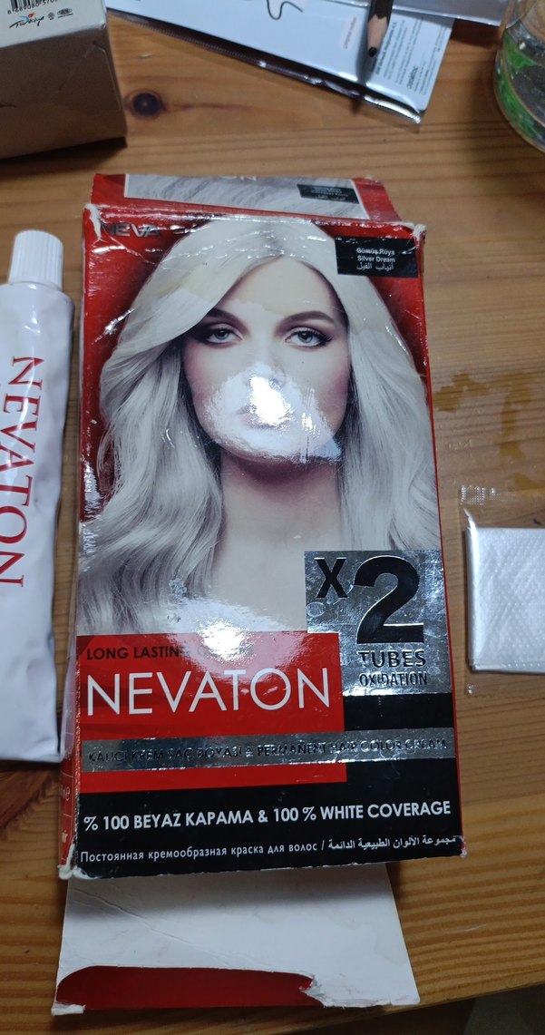 Nevaton uzun süre kalıcı saç boyası, %100 beyaz kapama sağlar ve tam uygulama için 2 tüp içerir. Krem kıvamıyla kolay kullanım sunar.