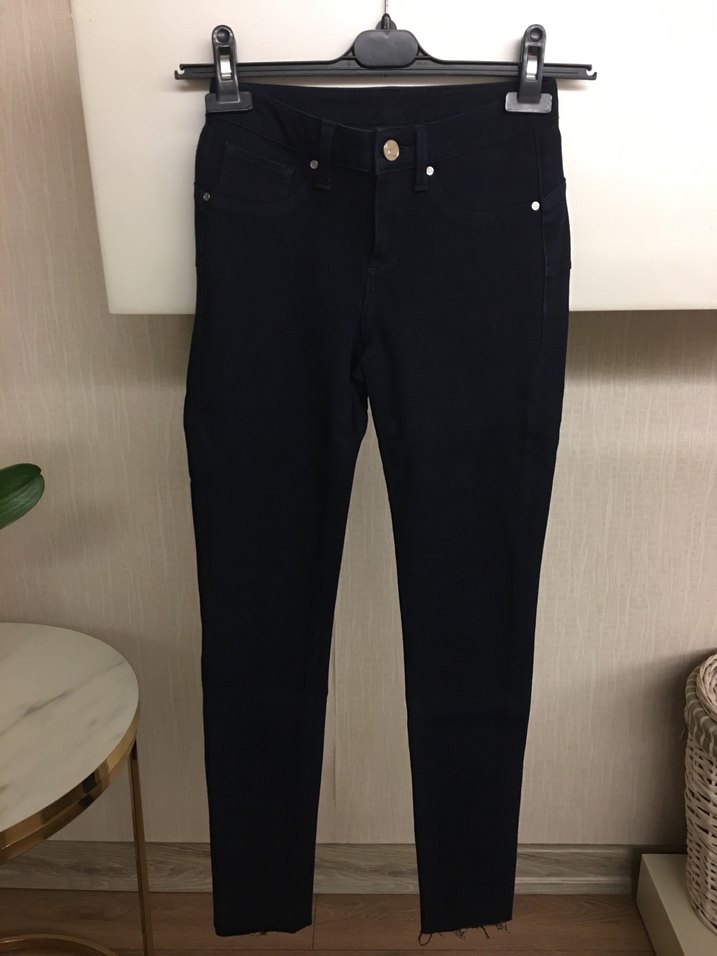 S beden esnek likralı önden gizli cepli, kumaş kalitesi muhteşem 1 kere giymiştim beden bana olmadığı için ekledim. Rengi koyu laciverttir. Ölçüleri: Boy 92, bel 32, kalça 39, düğmeden ağ 22 cm’dir