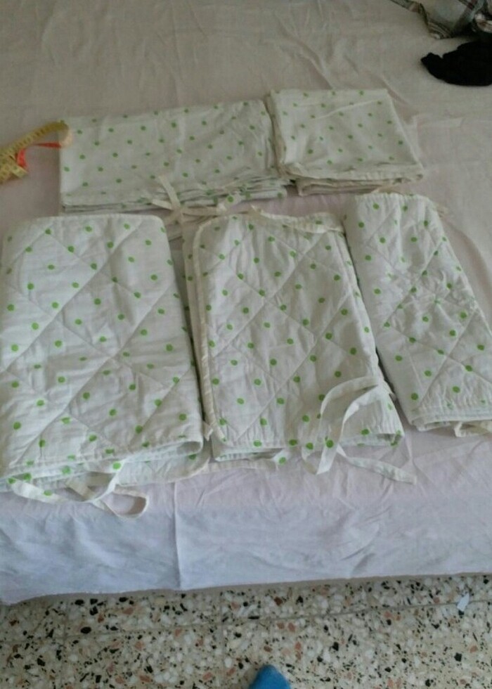 Az kullanılmış nevresim ve beşik kenarligi. İki adet uzun 113_41 bir adet kısa kenar 70_40 birer adet yastık kılıfı çarşaf ve yorgan yüzü tek taraflı düğmeli