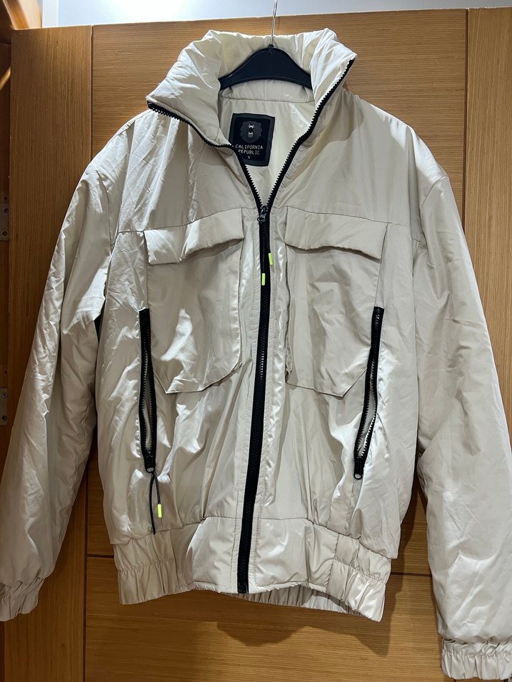 Bej midi uzunlukta, bol kesim, uzun kollu Suni kumaştan üretilmiş, fermuarlı cepler ve ön fermuarı bulunur. Dış mekan için uygun.az kullanılmıstır sorunu yoktur