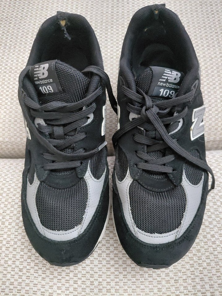 New Balance 109 gri erkek spor ayakkabısı, düz tabanlı ve elastik detaylara sahip. Spor ve günlük kullanıma uygundur. ♀️