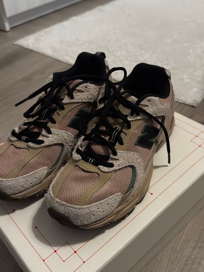 Kahverengi ve gri tonlarında, bağcıklı kadın spor ayakkabısı. Spor ve sokak stili için uygun, lastik tabanlı ve stilettolu tasarım.