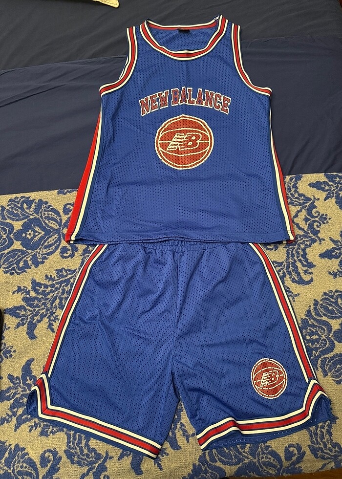 Spor şort ve atlet takımı Mavi üzerine kırmızı şeritli M beden
