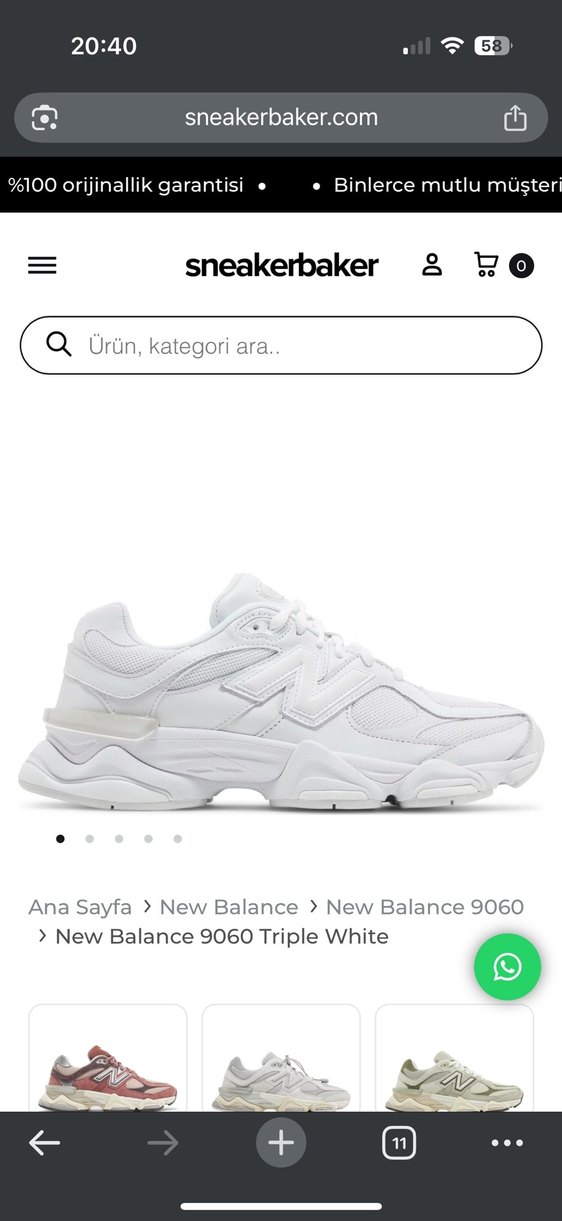 Yurt dışından arkadaşıma kendim için getirtmiştim. Çok üzülerek bana küçük geldiği için satışa koydum. Kutusu maalesef yok(bavula sığması için kutusunu attık) Çok tarz ve zor bulunan bir modeldir. New Balance 9060 Triple White modeliyle koleksiyonuna yeni bir parça ekliyor. WHITE/WHITE/WHITE tonlarındaki bu seçkin tasarım, U9060NRJ ürün koduyla sınırlı sayıda üretildi. New Balance'ın bu özel modelini kaçırmamanızı önerim.