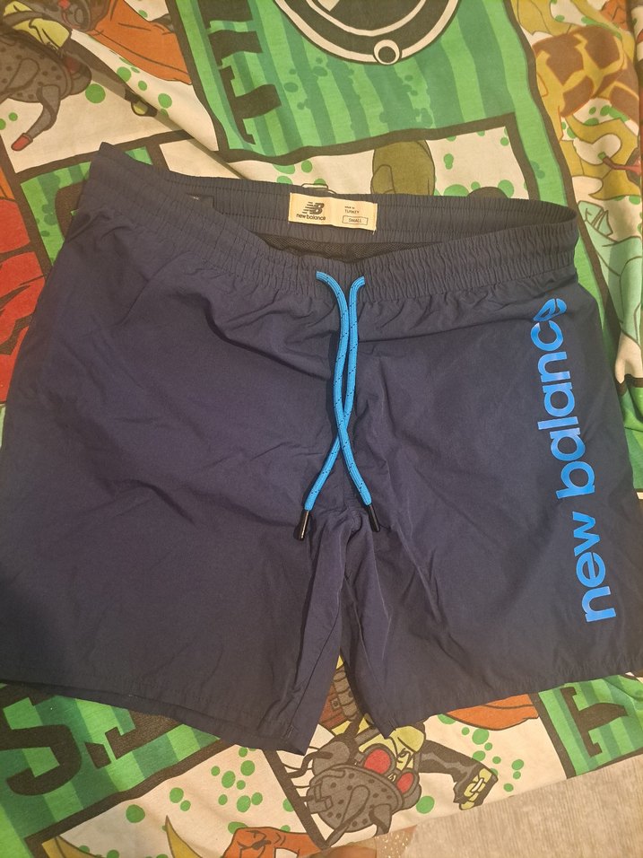 New Balance marka, cep fermuarlı, midi boy, bol kesim lacivert erkek şort, plaj ve günlük spor stiline uygun.sayılı kullanıldı.