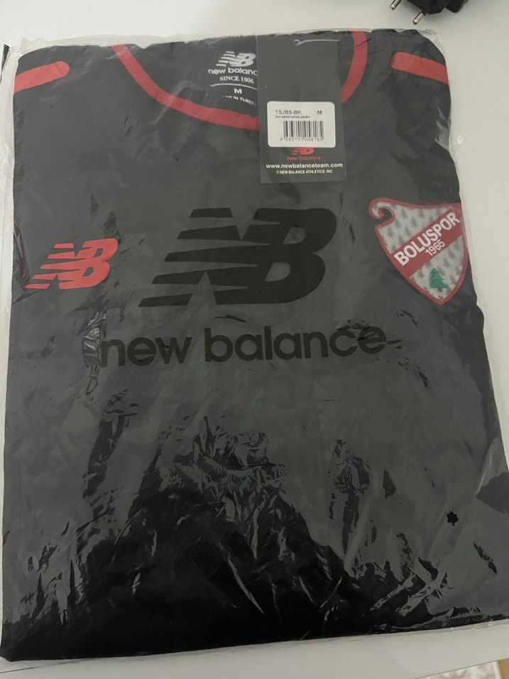 Bolu spor New Balance markalı, siyah renkli, baskılı logolu, kısa kollu ve bisiklet yaka erkek spor tişörtü. Athleisure ve sokak stiline uygun, velcro detaylı ve normal midi boyda.