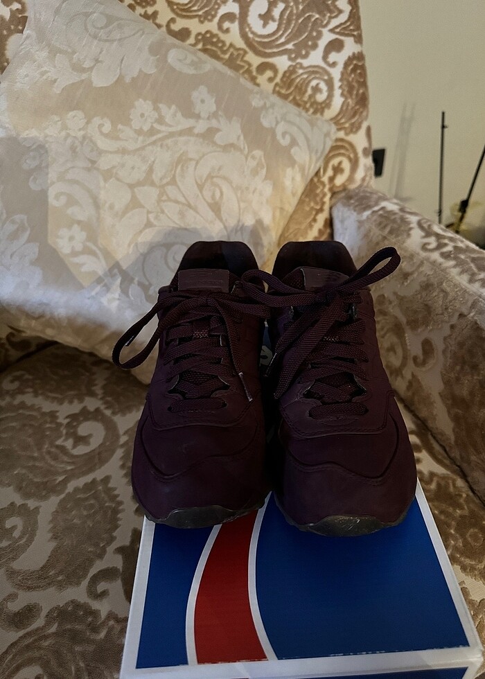 New Balance 574 bordo renk 37 numara spor ayakkabı. Ürün orijinaldir. Az giyilmiş ve temiz kullanılmıştır. Detaylı fotoğraf talep dahilinde eklenecektir. Herhangi bir yırtık/defo yoktur. Teklifler değerlendirilir.