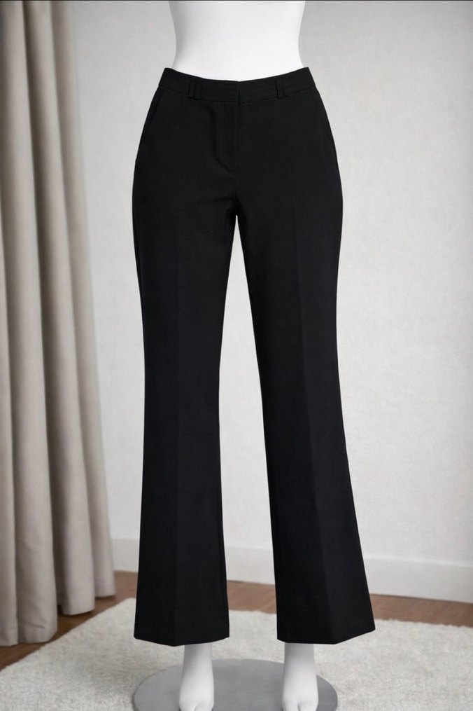 Siyah kumaştan, midi boy, normal kesim kadın pantolon. Belinde daraltma yapilmistir. Bel 33 cm Boy 94 cm