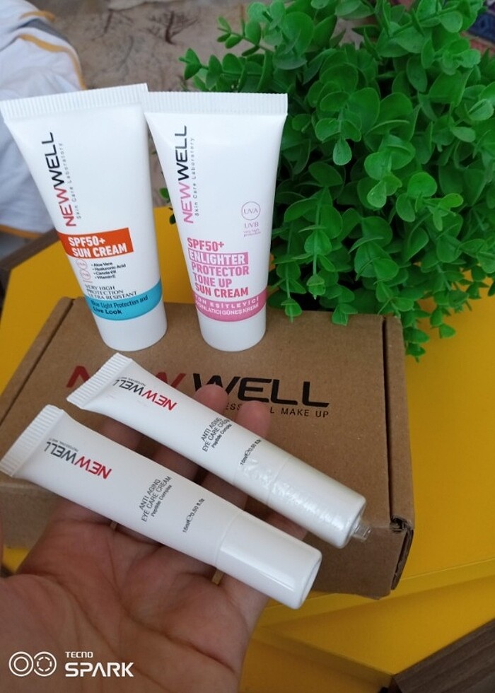#New well #guneskremi ...Set halinde gönderilecektir ....1 adet ton esitleyici güneş kremi 1 adet normal güneş kremi ikisi de 50 ml ...2 adet new well göz bakım kremi (15 ml) hepside yeni hediye geldi deneme amaçlı açıldı göz bakım kreminin teki hic açılmadı ...fırsat bu fırsat kaçmaz